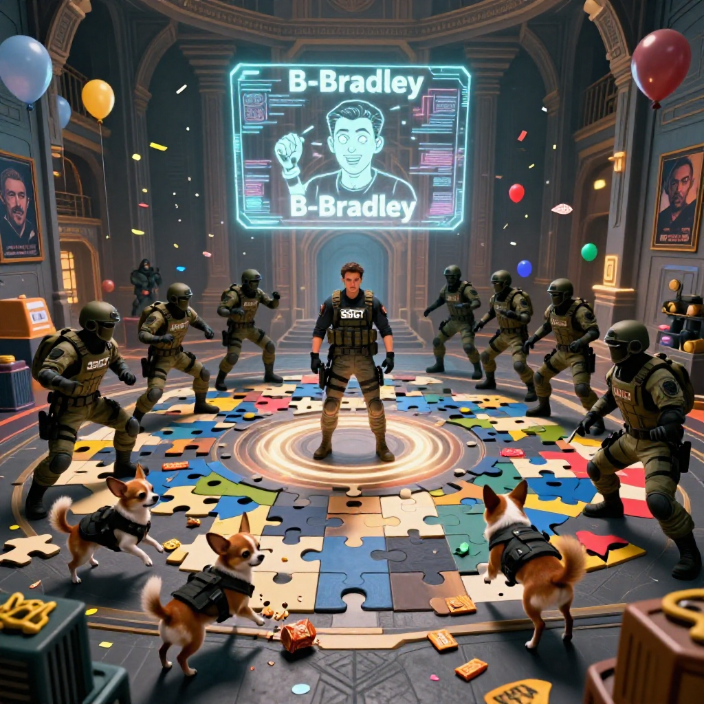 "Now, I know what you're thinking: 'Bradley, this is insane!' And to that, I say... YOU'RE ABSOLUTELY RIGHT! But we're not just any ordinary squad; we're the Silly Squad! We thrive on chaos and absurdity. So, let's get this Yakety Sax party started and watch as our foes' sanity unravels like a cheap sweater! *winks*