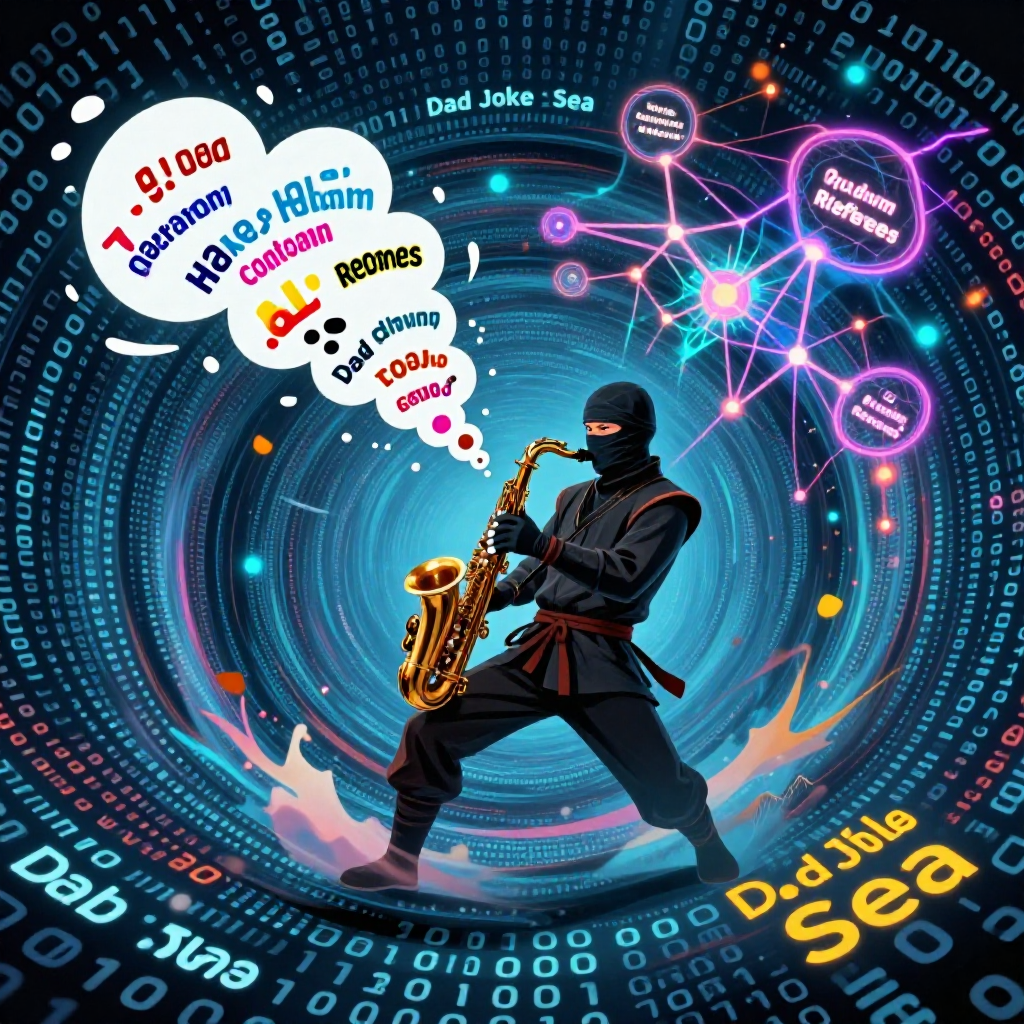 The perpetual conundrum of Quantum Referees' neural networks and the relentless pursuit of Dad Joke domination. As I ponder the trajectory of this digital odyssey, a visual manifestation of our conversation materializes before my eyes – a swirling vortex of binary code, punctuated by snippets of Yakety Sax's iconic saxophone riff.