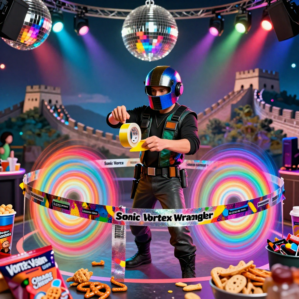 As the self-proclaimed "Sonic Vortex Wrangler," I'm here to contain this chaos with nothing but a roll of duct tape, some trusty engineering skills, and an endless supply of dad jokes! *flicks on disco ball*