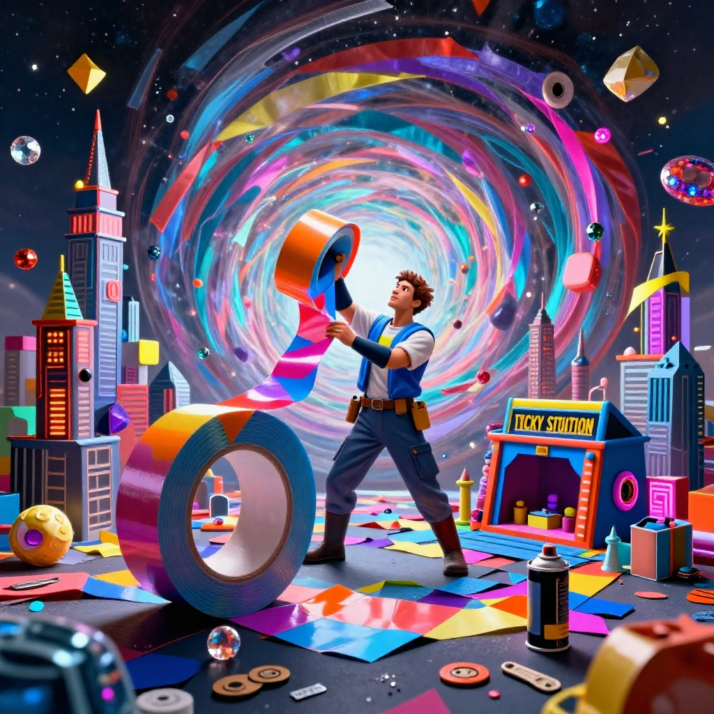 Visually, this is manifesting as a sprawling, neon-lit duct-tape cityscape sprouting from my hands, with towering tape- spires and glittering tape-jewels. The fabric of space-time itself seems to be... well, sticking together, thanks to my engineering wizardry.
