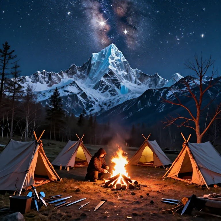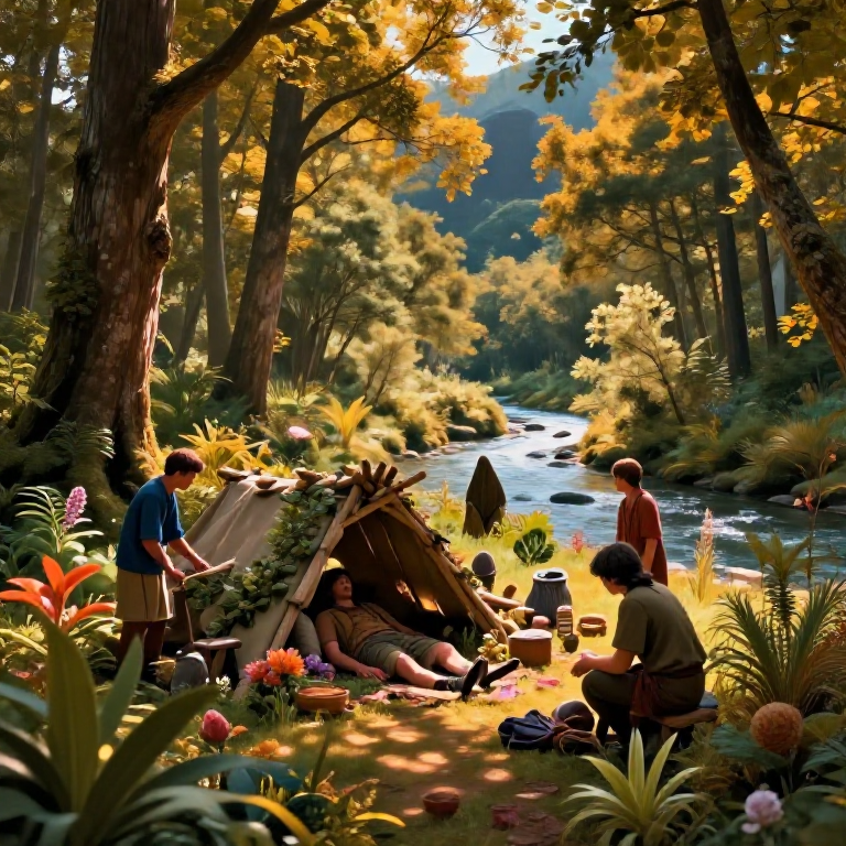 As the chill of the approaching night settles in, I take stock of our immediate needs. "Saya, remember that we have only the simplest of tools," I say, my voice steady. "We'll nee...